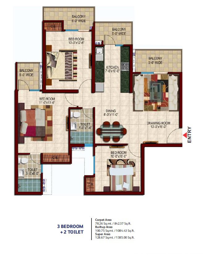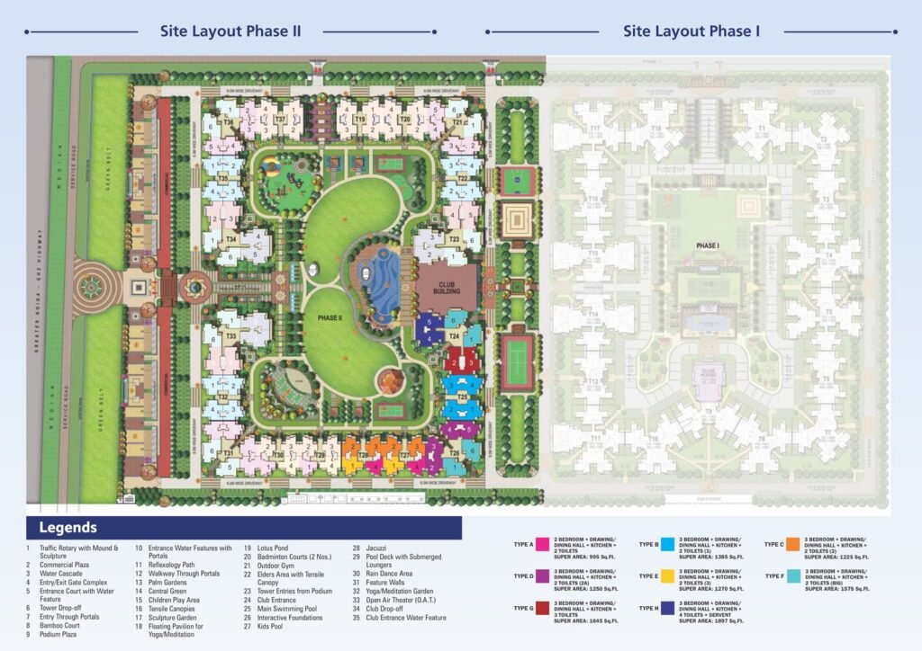 Loaded with tremendous facilities, the development is offering 2 BHK + 2 Toilet 995 Sq ft. and 3 BHK+2/3 Toilet 1225 to 1897 Sq ft for interested home buyers as per Nirala Estate Phase 2 Brochure. This development is offering world class living spaces at strategic location.
